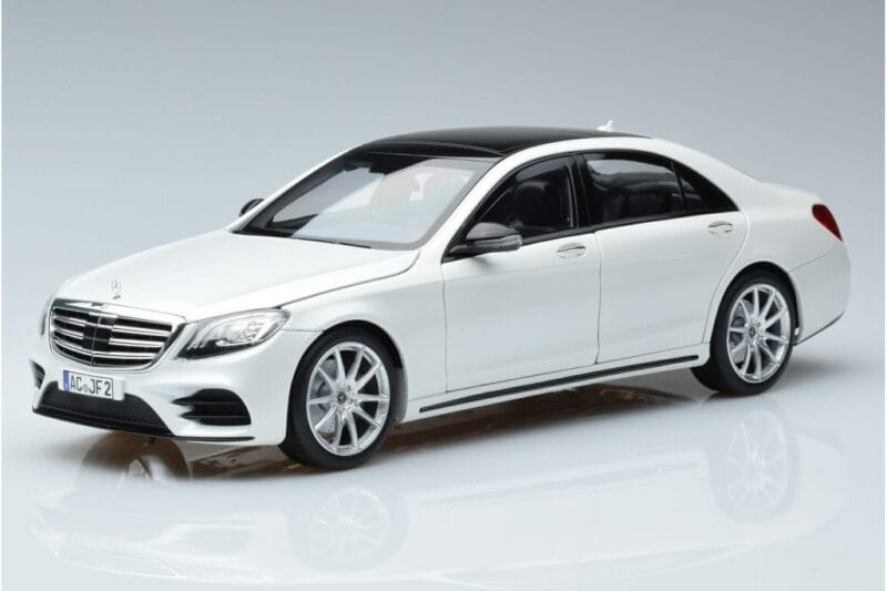 A 1:18 scale model measures approximately 25–28 cm (ca. 10–11 Zoll). The Mercedes S-Class W222 AMG Line Norev 1:18 is perfect for display in a glass cabinet or on a shelf.